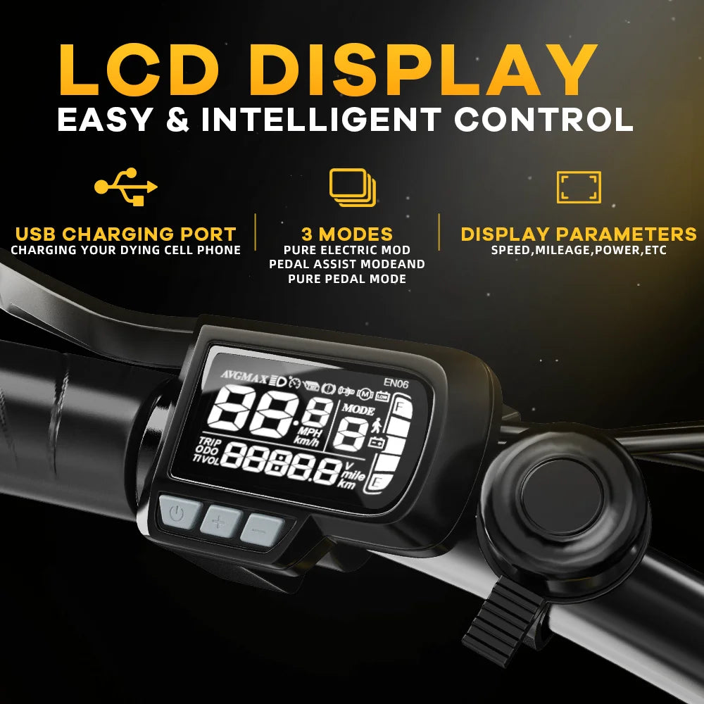 Foldable and Saving Design: The foldable design of the Cybervelo e-bike ensures that you can take it anywhere. There are 3 class modes, five available levels of pedal assist and a professional 7-speed transmission system. The smart LCD display with charging port continuously shows real-time speed, mileage, and battery power, ensuring you to control your e-bike riding status.