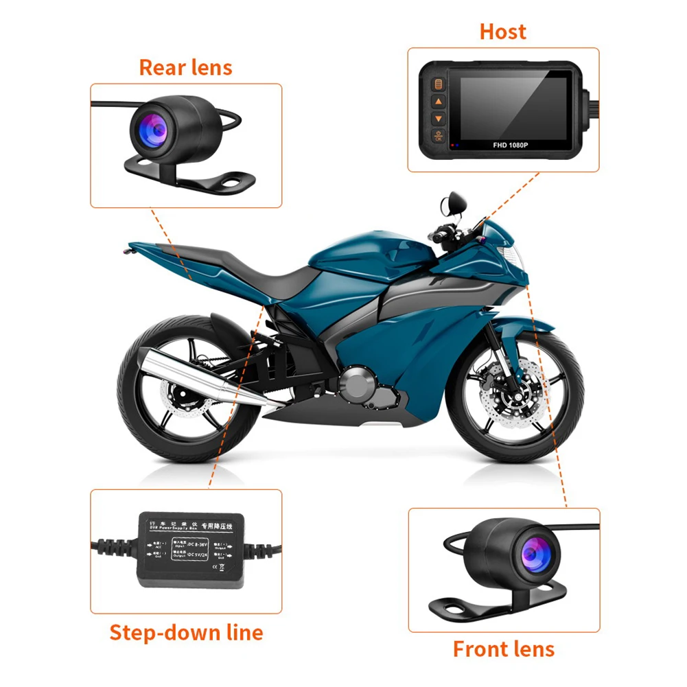 1080P/720P Dash Cam Driving Video Recorder Waterproof 3 Inch Motorcycle Dash Cam Universal Handlebar Fixing Motorcycle Equipment