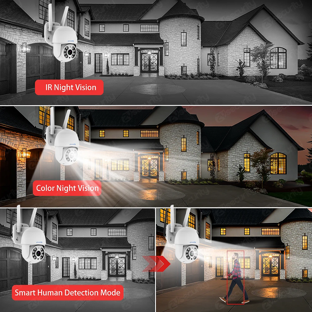 Built in 4pcs IR LED & white light LED, 3 mode night vision for choose in App, 30meters upgrade night vision and Low light imaging, See clear every details even in the backlight and night.
