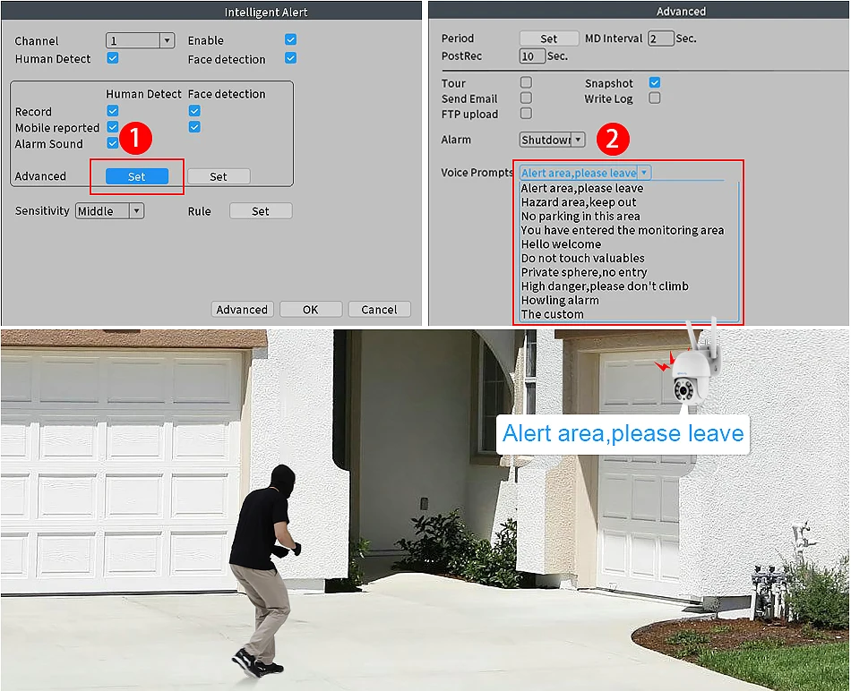 ●Two Way Audio: Support DIY Alert Voice and Alarm Bell / Customized new speakers with loud volume.