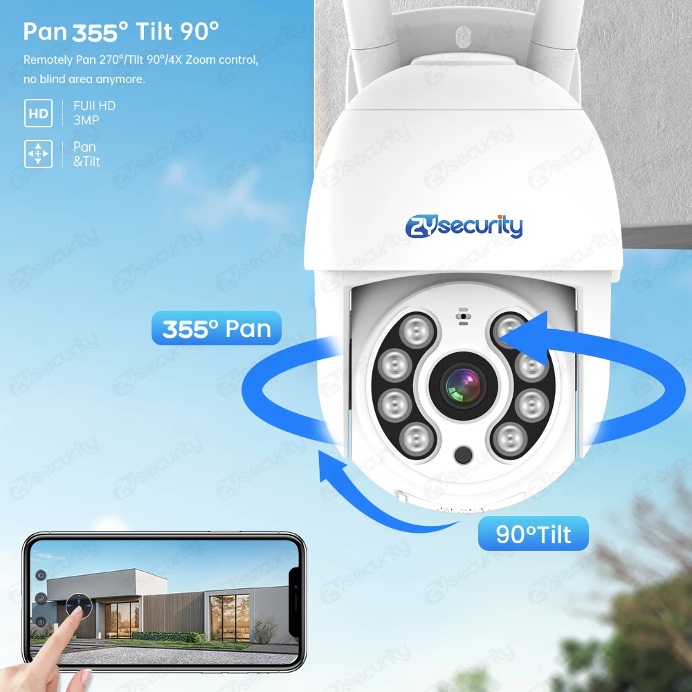 Camera head are rotatable with 355° pan and 90° tilt. You can control it via the app and get a sweeping view on every inch of your entire house