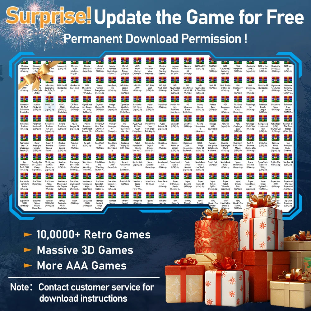 The product comes pre-installed with 38,200 games, including AAA games, classic retro games, and massive 3D games. It is your best choice!