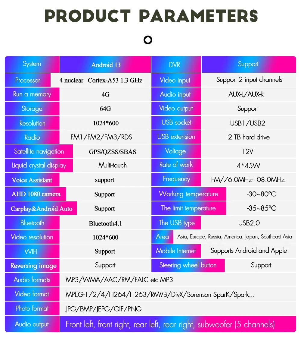 - ANDROID 13 SYSTEM,CPU 4 Core AC8227L A53 , 4GB RAM + 32GB ROM / 4GB RAM + 64GB ROM