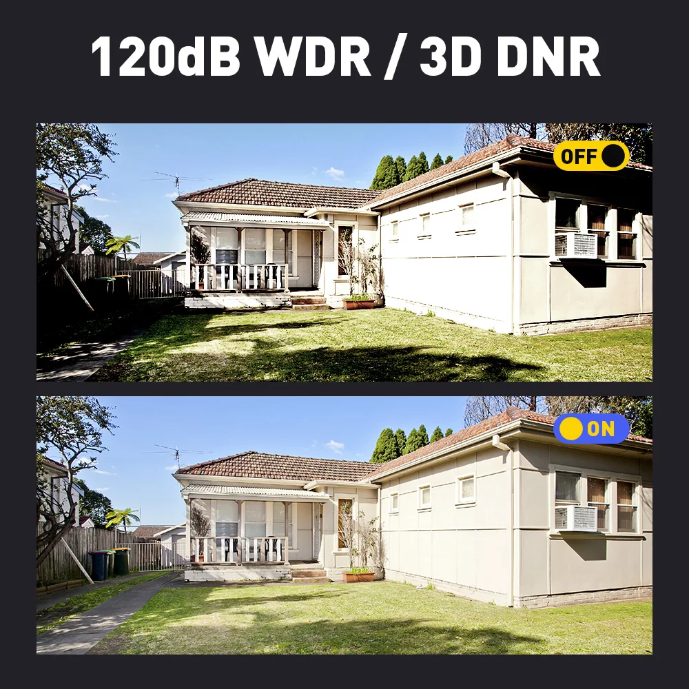 ★ Clear day and night vision with 3D DNR and 120DB WDR