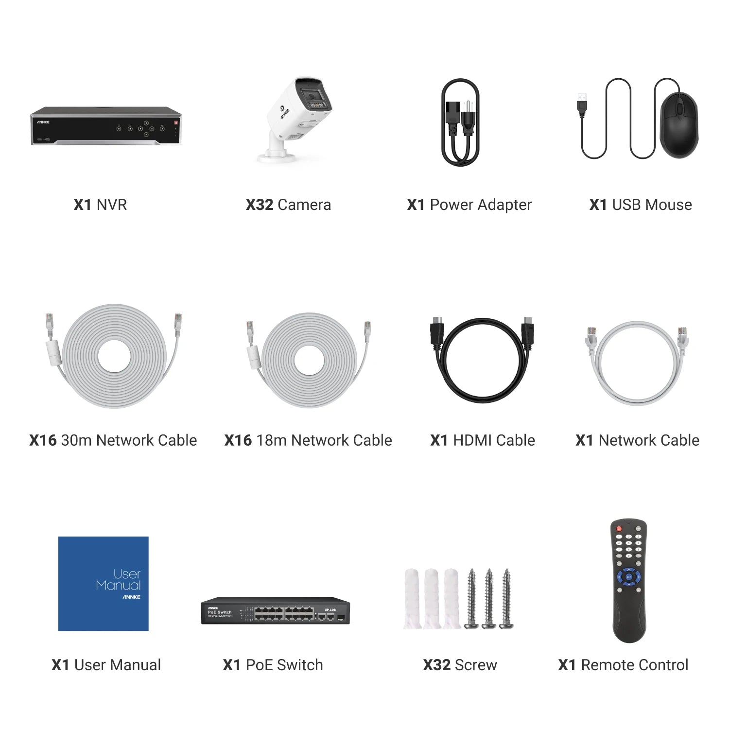 ANNKE 32CH 4K Ultra HD POE Network Video Security System 8MP H.265+ IP Camera Support Two Way Audio Human&Vehicle Detection 4MM