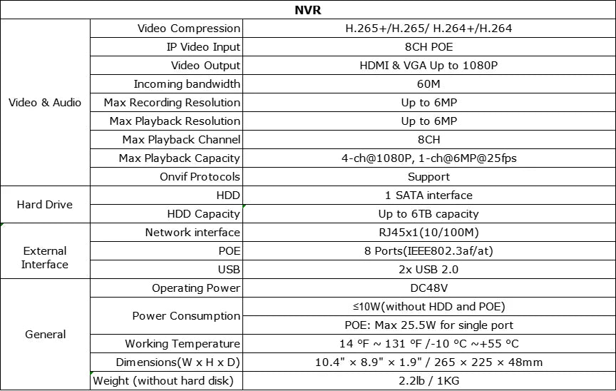 · Up to 8 channel IP camera connectable with built-in PoE inputs