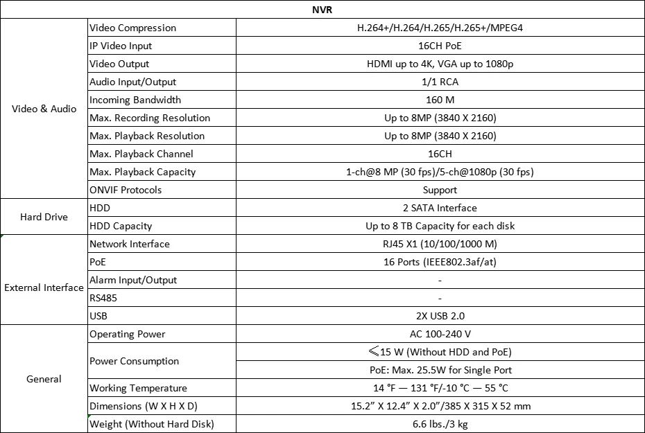 Video Input: 16 Channel