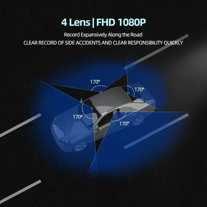 Car camera recorder 4 screens, 24 hours to record parking monitoring,