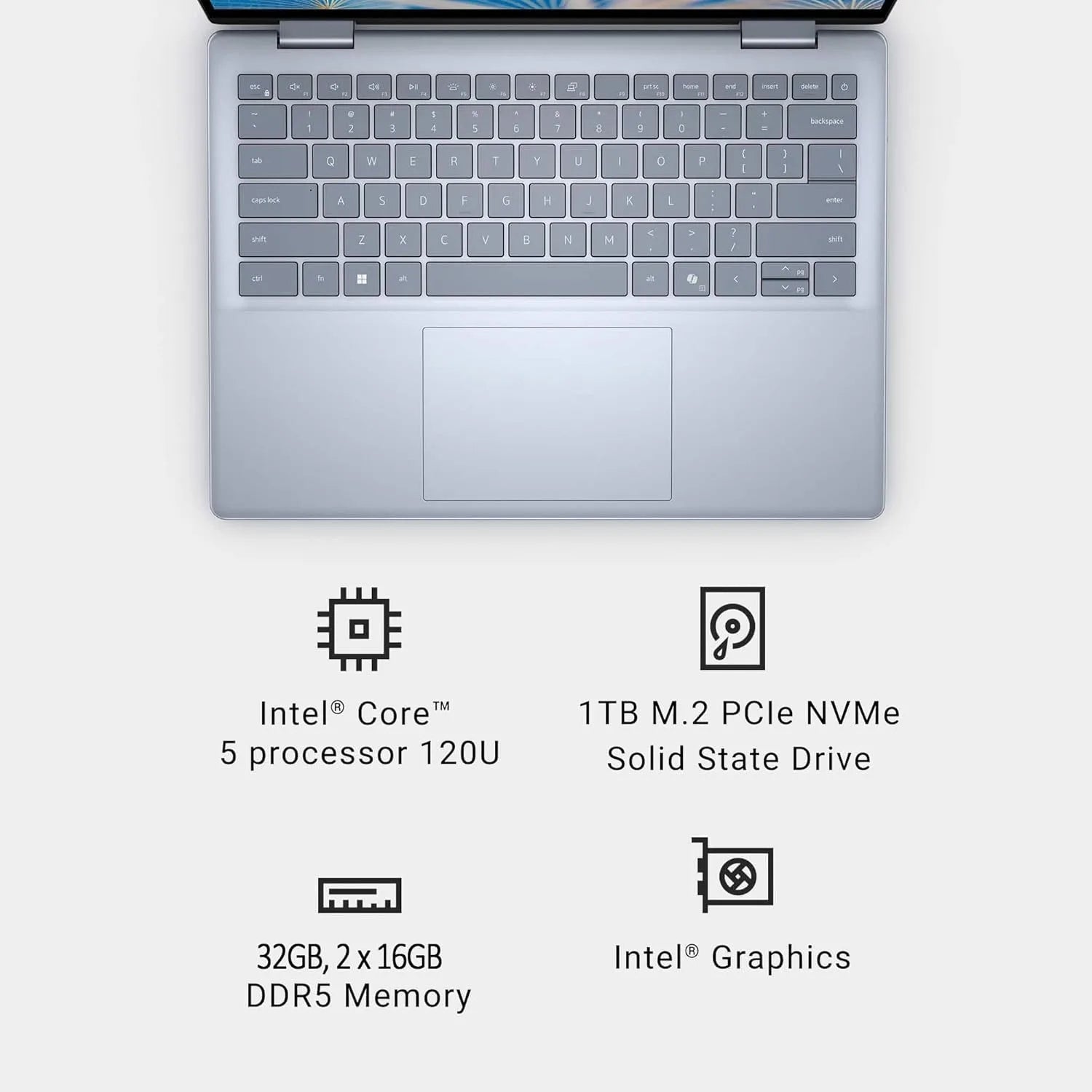 Dell Inspiron 14" 2-in-1 Touchscreen Laptop,Intel Core 5 120U,40GB RAM,2TB SSD,Intel Graphics,Ice Blue