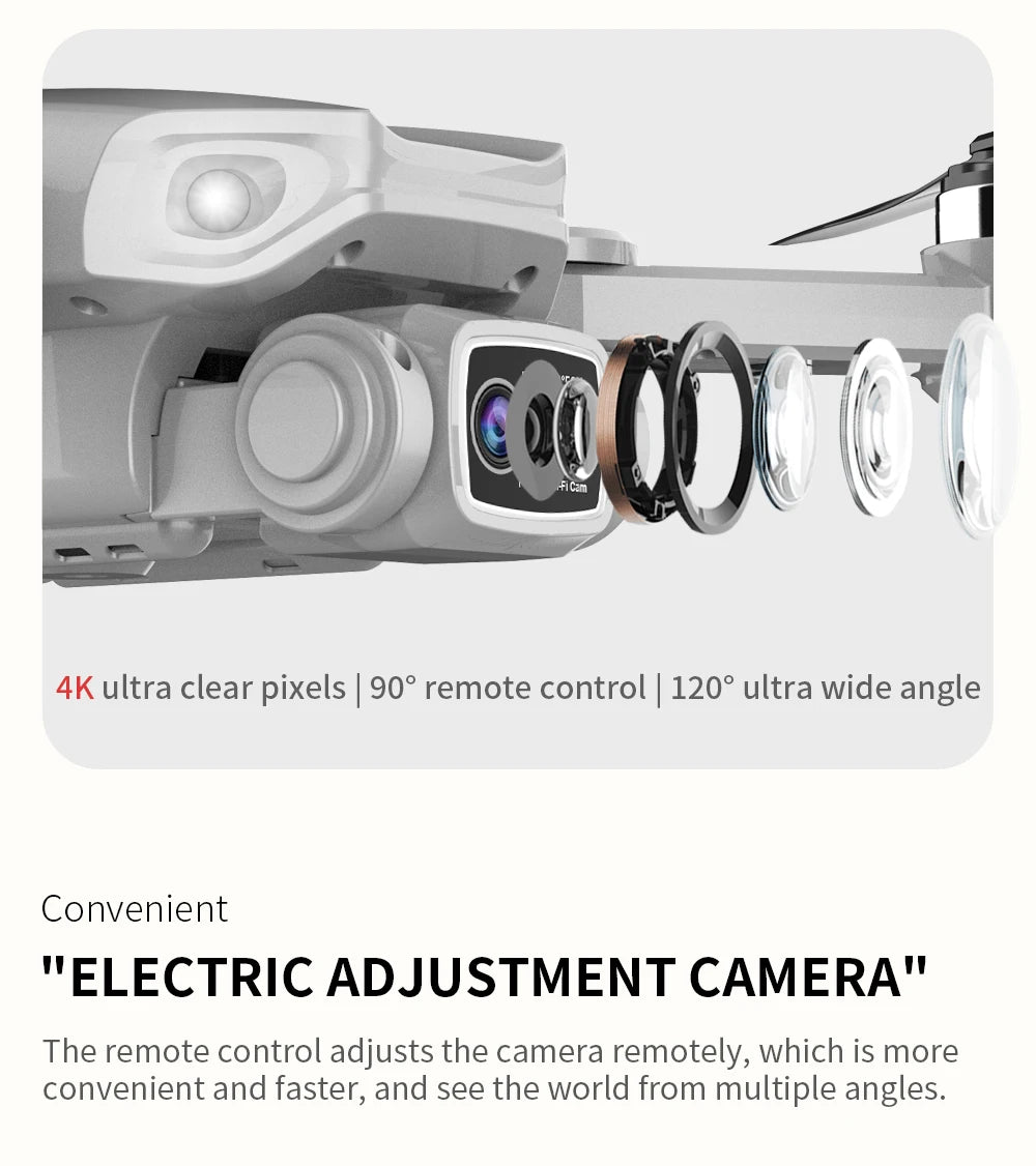 - ESC 4k HD Wide Angle Camera. can be adjust the angle 90°by controller.