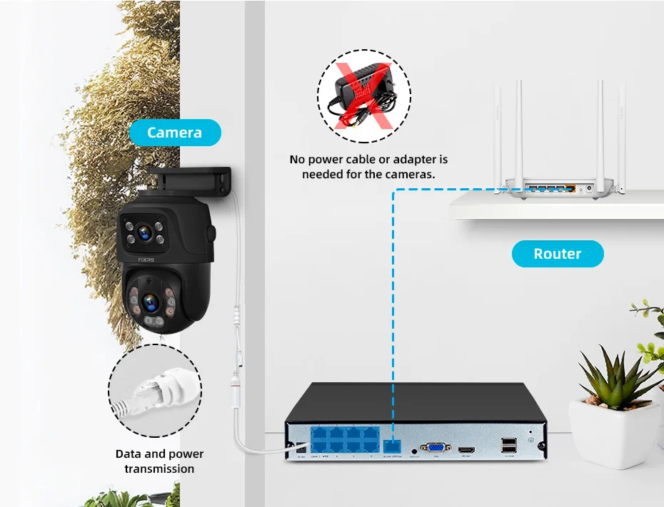 3. Simple Maintenance: each camera is connected by a network cable, and there is no need to maintain the power supply, power cord, power socket, etc. in the later stage;