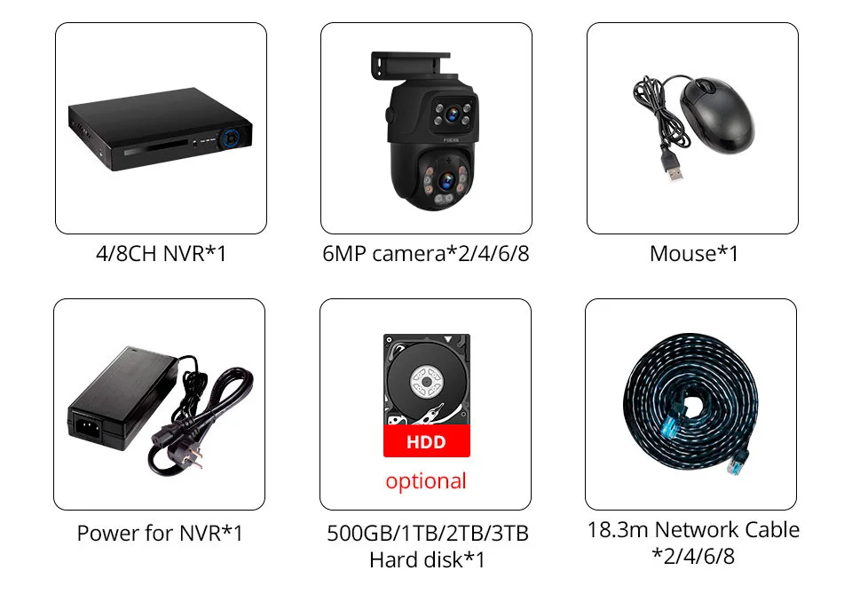 FUERS 8CH Poe 6MP Camera System Video Surveillance Kit Security Camera Ptz Camera Outdoor Camera Two Way Audio Full Color Night