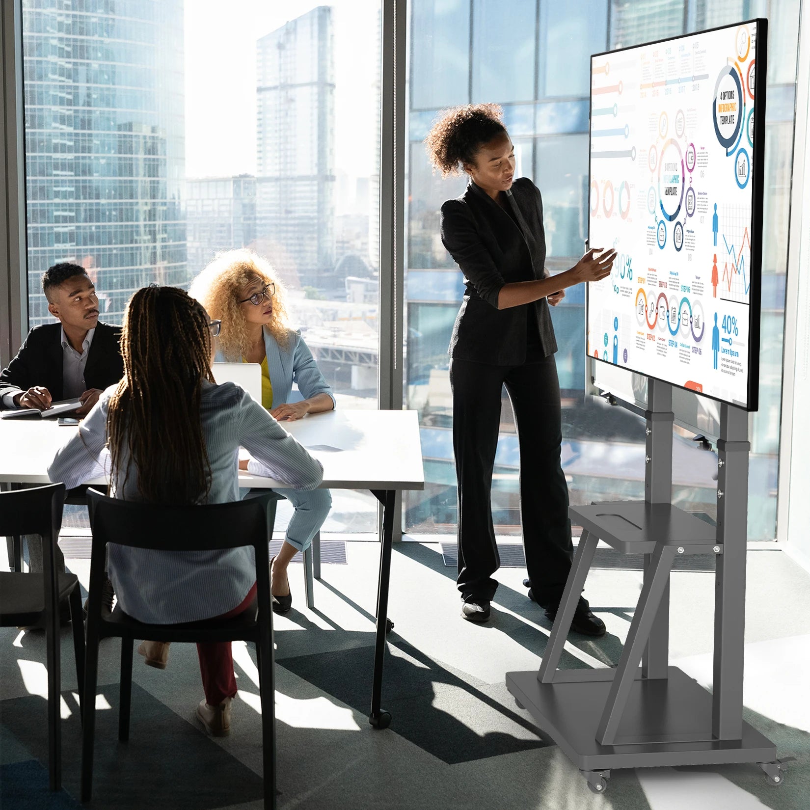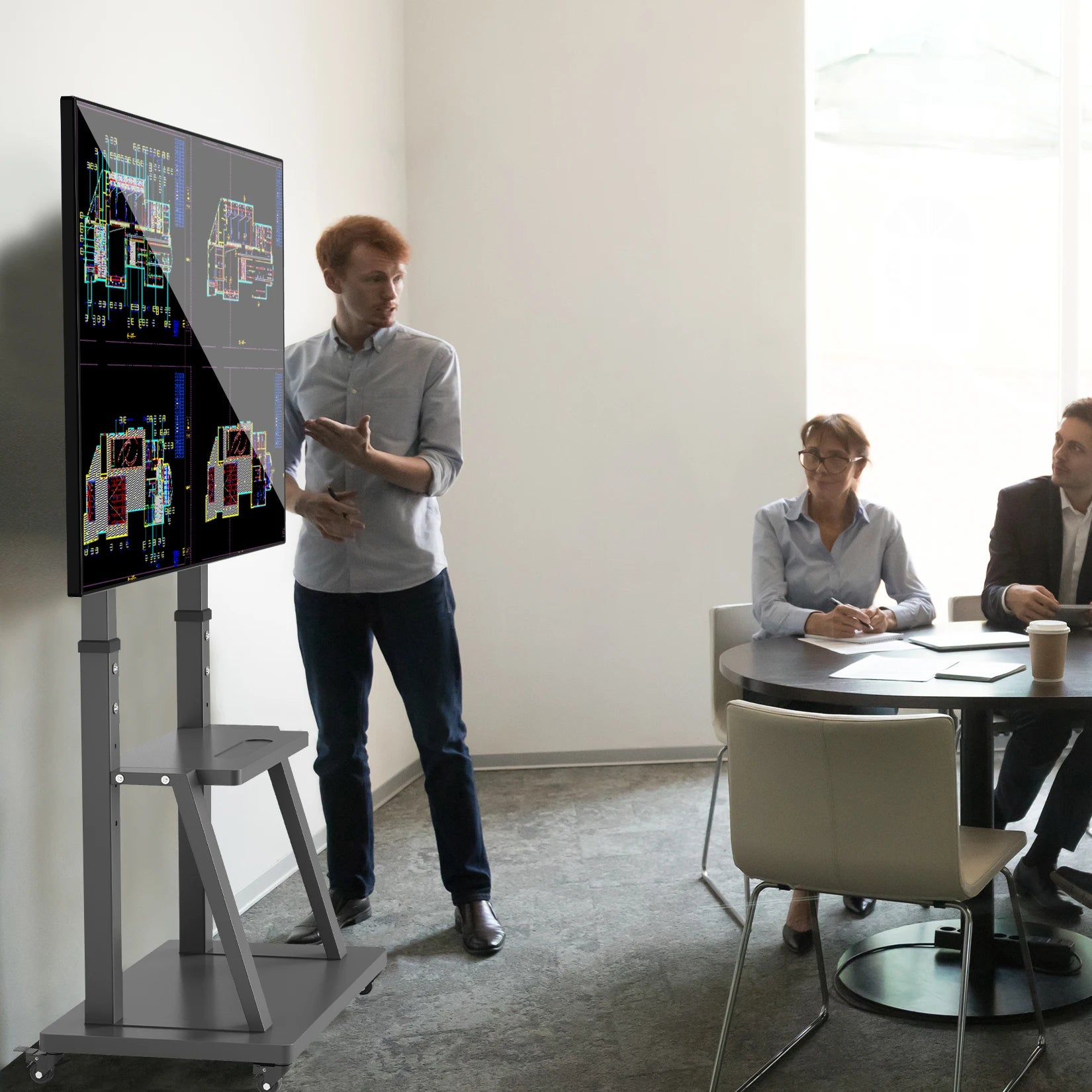 Heavy Duty Mobile TV Cart Stand Height Adjustable Stable TV Trolley with 2 Tier Storage Shelves