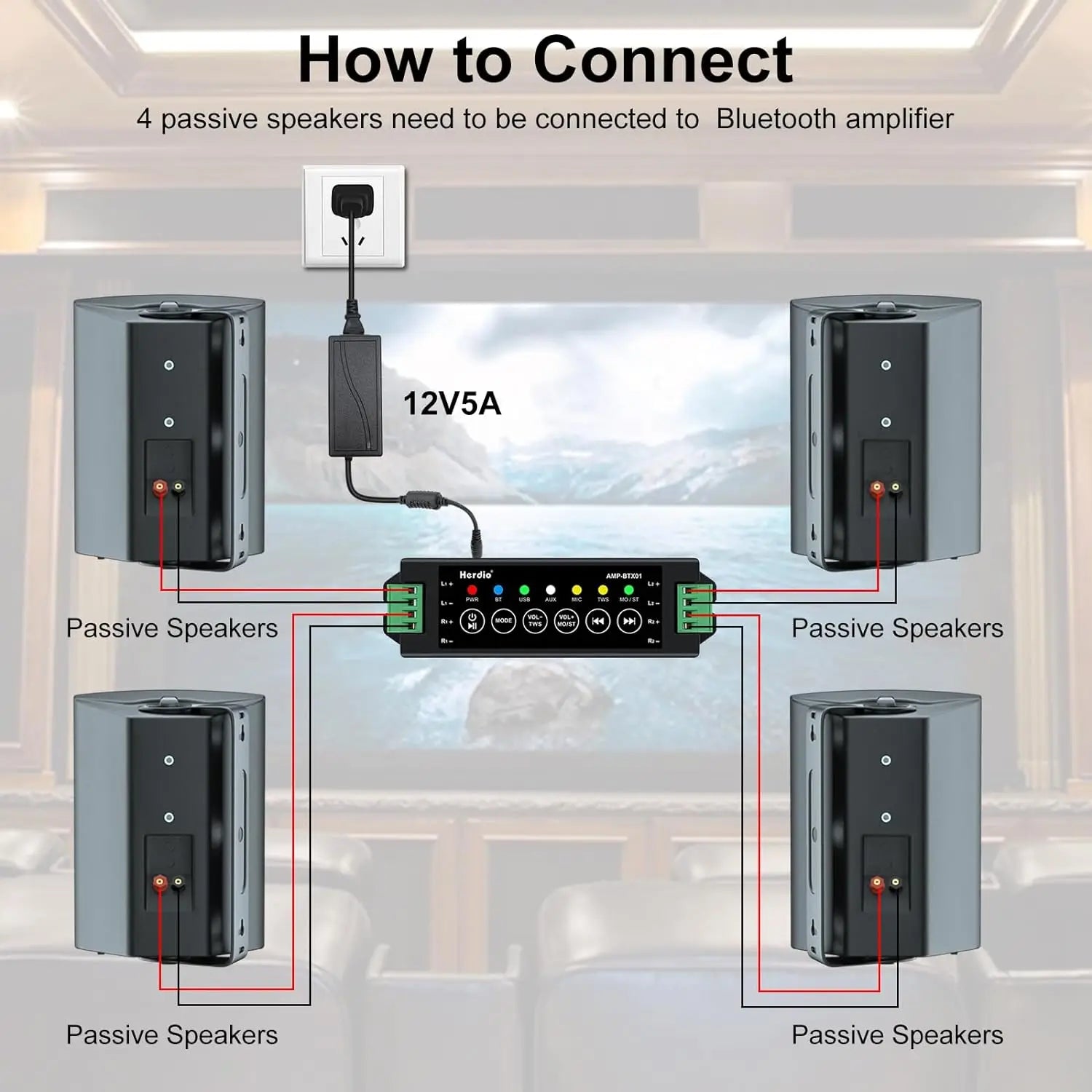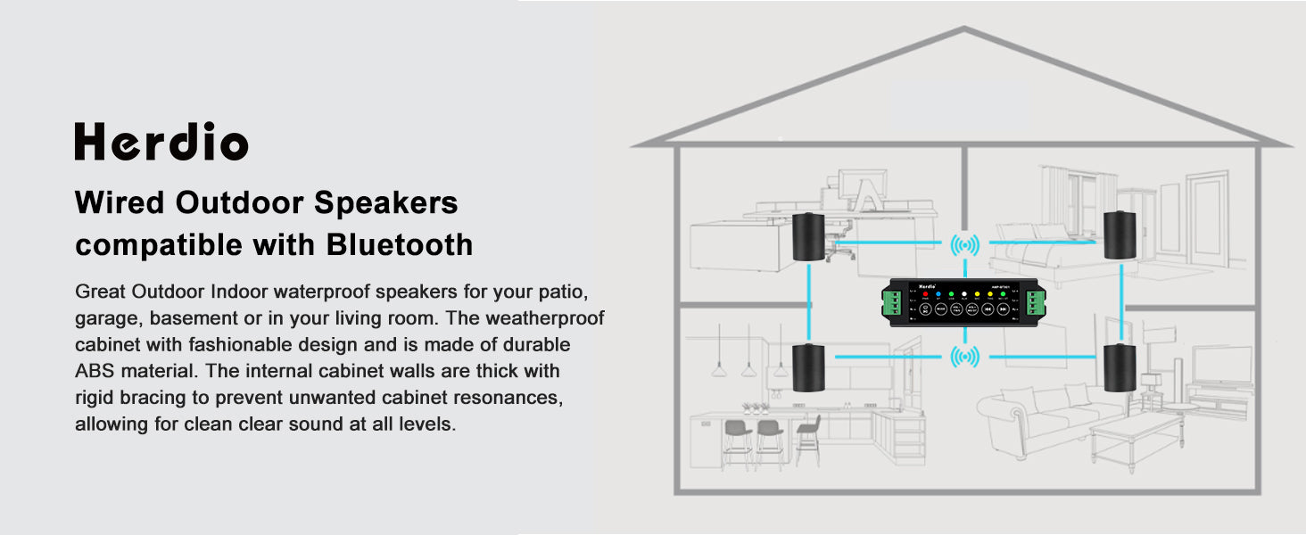 Herdio 5.25'' 600W Outdoor Bluetooth Speakers Waterproof Wired Wall Mount Weatherproof Loudspeaker System For Indoor-Outdoor