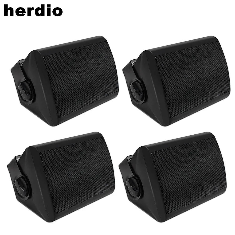 Herdio 5.25 Inch 600W Outdoor Bluetooth Speakers Waterproof Wired Wall Mount Weatherproof Loudspeaker System for Indoor- Outdoor Garden Poolside Patio Garage Home(4 Speakers,Black)