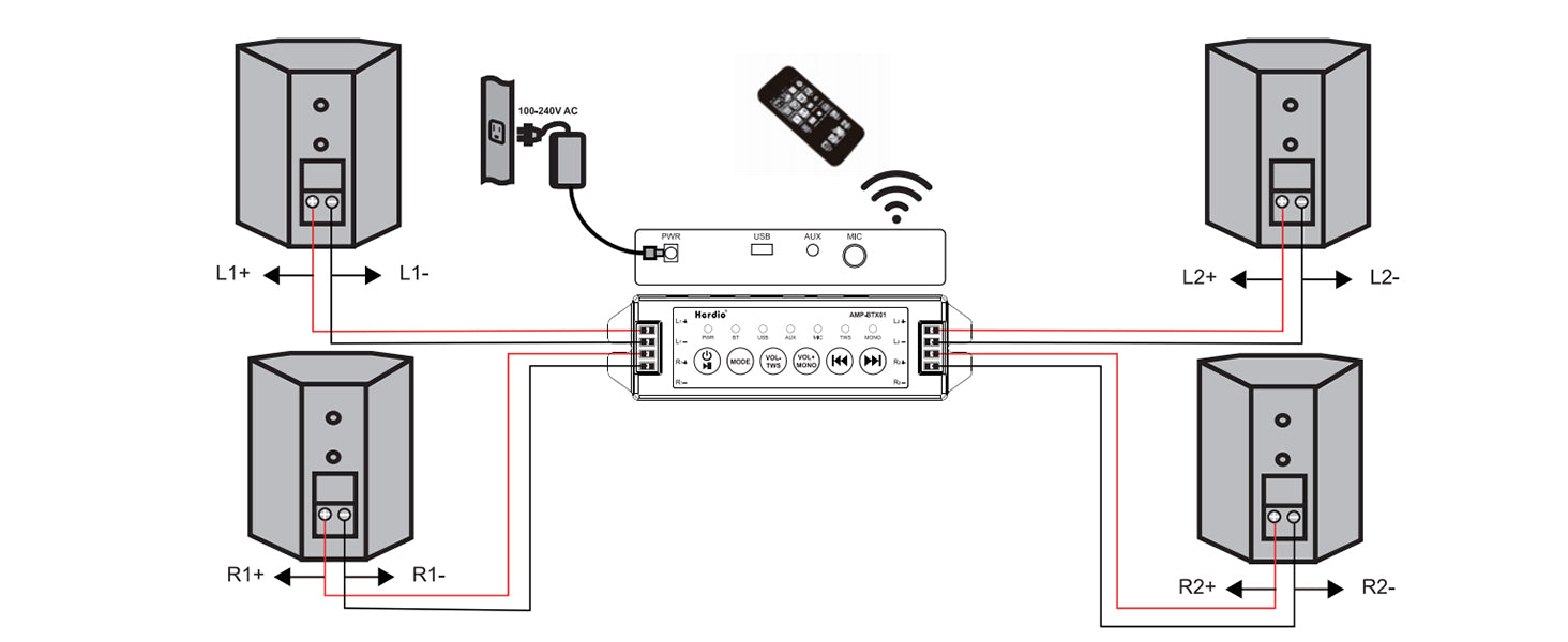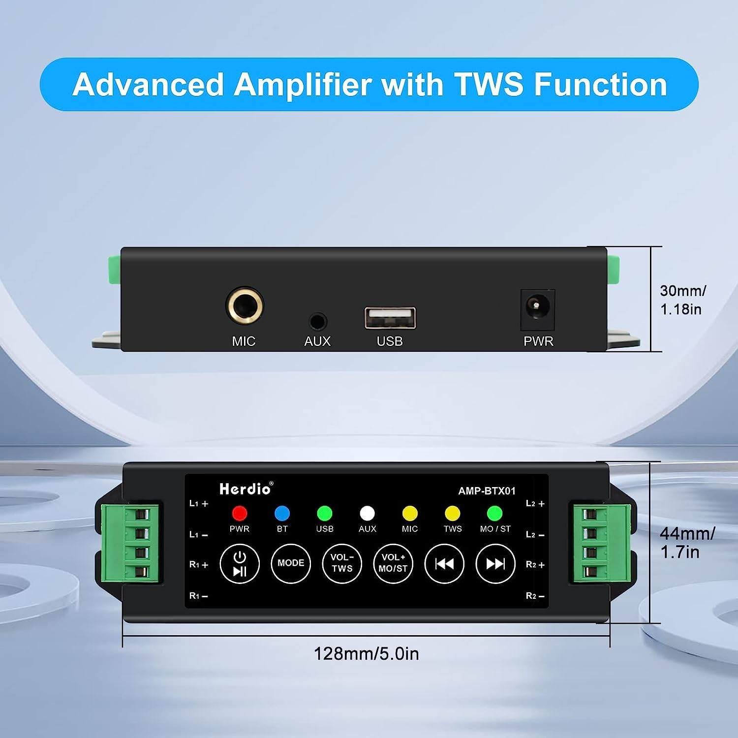 【Bluetooth Compatible 】This outdoor speakers set comes with a 68 Amplifier Box and is compatible with Bluetooth audio streaming, supporting connection to 4 speakers (1 TWS) and remote music playback from a smartphone, tablet, laptop or TV with up to 65 feet line of sight, producing clear sound. Ideal for personal indoor, outdoor, home use or outdoor DJ parties.