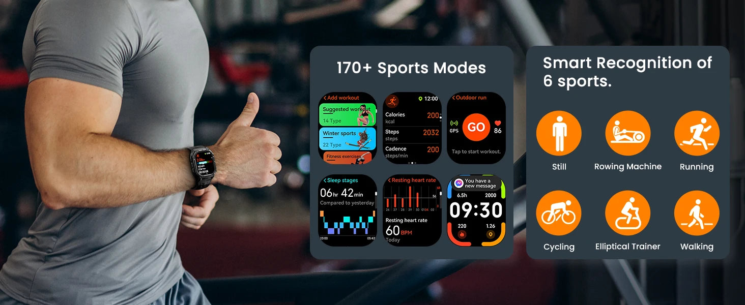 Sports Modes: 170+ Sports Modes with 6 Smart Recognition