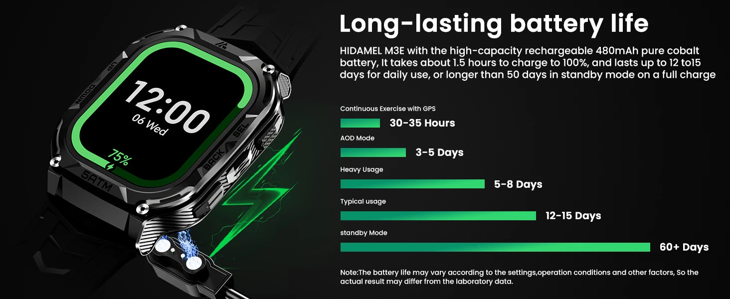 Battery Life: 15,Standby:50 Days Daily use: 10-15 Days Always-On Display: 2-3 Days