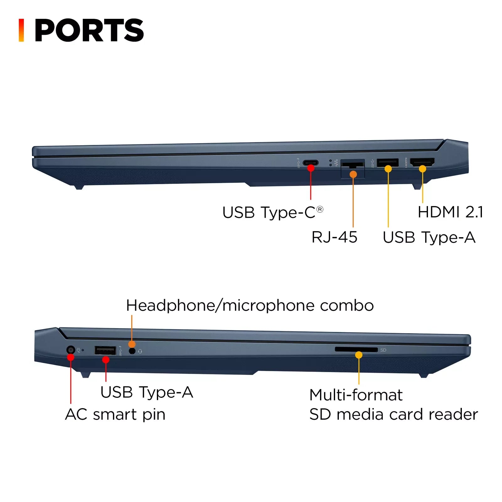 [Tech Specs] 1 x USB Type-C (USB 5Gbps), 2 x USB Type-A (USB 5Gbps), 1 x AC smart pin, 1 x HDMI, 1 x Headphone/microphone Combo Jack, 1 x SD Media Card Reader, 1 x RJ-45, Wi-Fi 6, Bluetooth, Backlit KB.