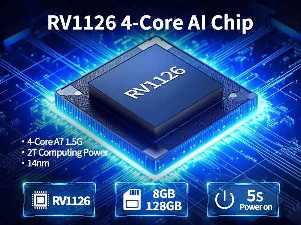 Equipped with 4-cores 14nm, 2T computing power chip which allows to turn on for only 5 seconds.
