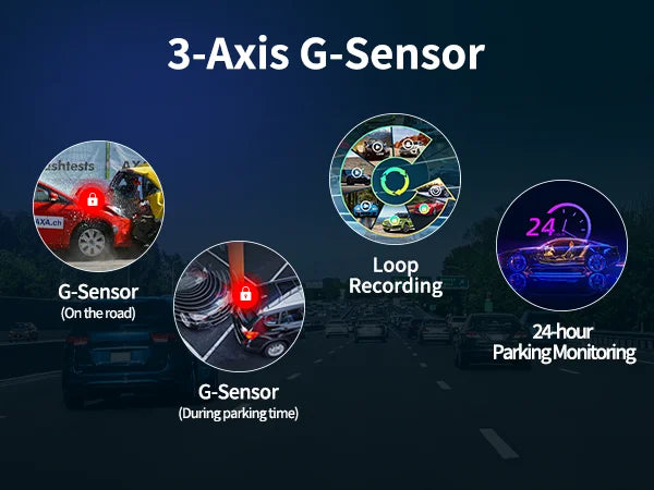 With built-in 3-Axis G-sensor, the sensitivity can be set to low, medium, or high. If there is vibration during recording, the machine will record a new 20-second video and save it to the device.