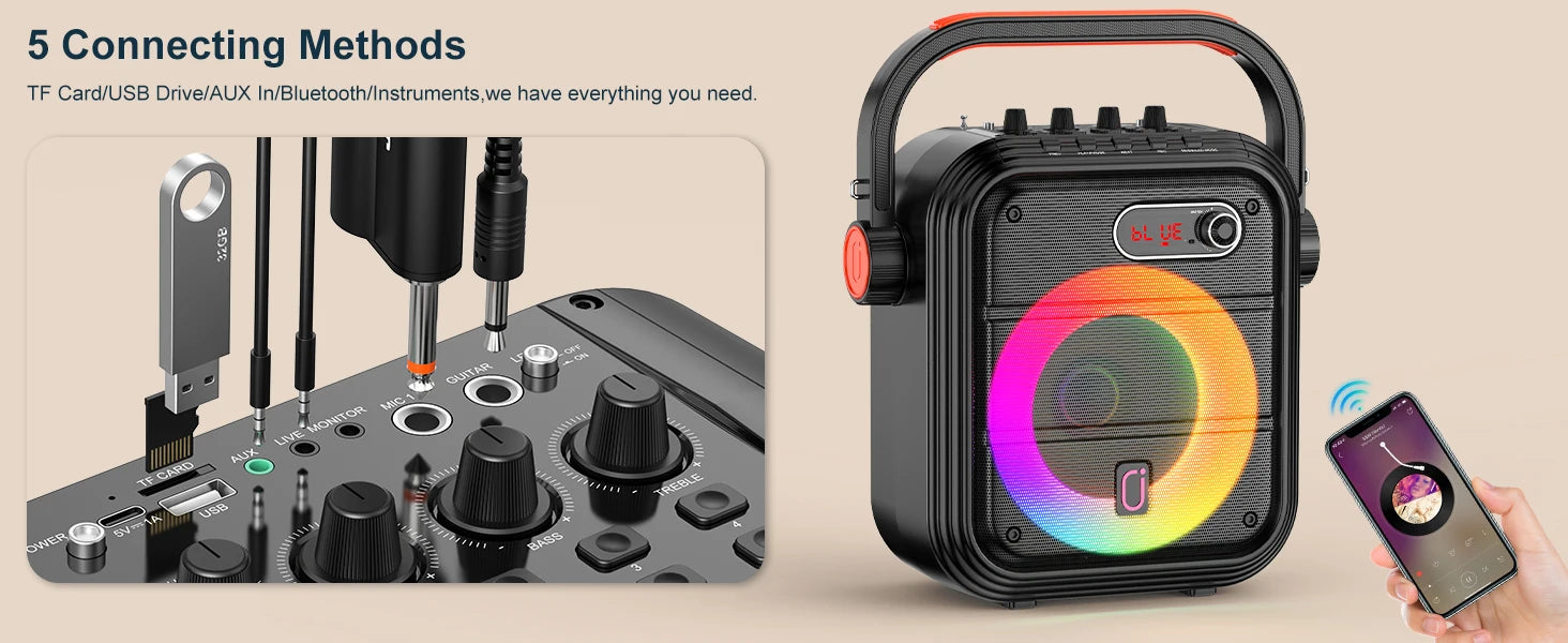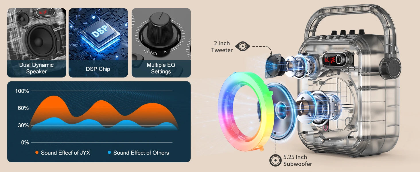 Outshines the competition with its captivating and vibrant light ring. This dynamic visual feature adds an electrifying ambiance to your entertainment, creating an unforgettable atmosphere for your gatherings.