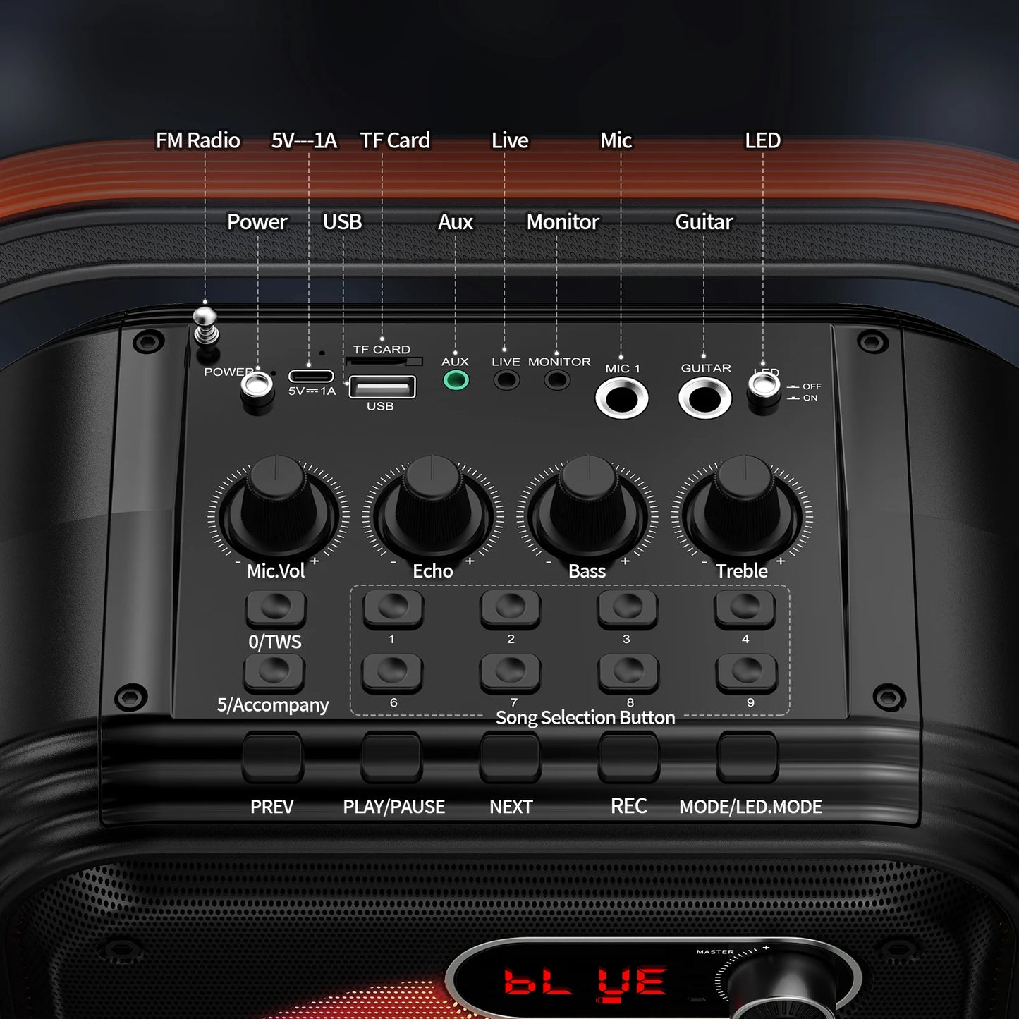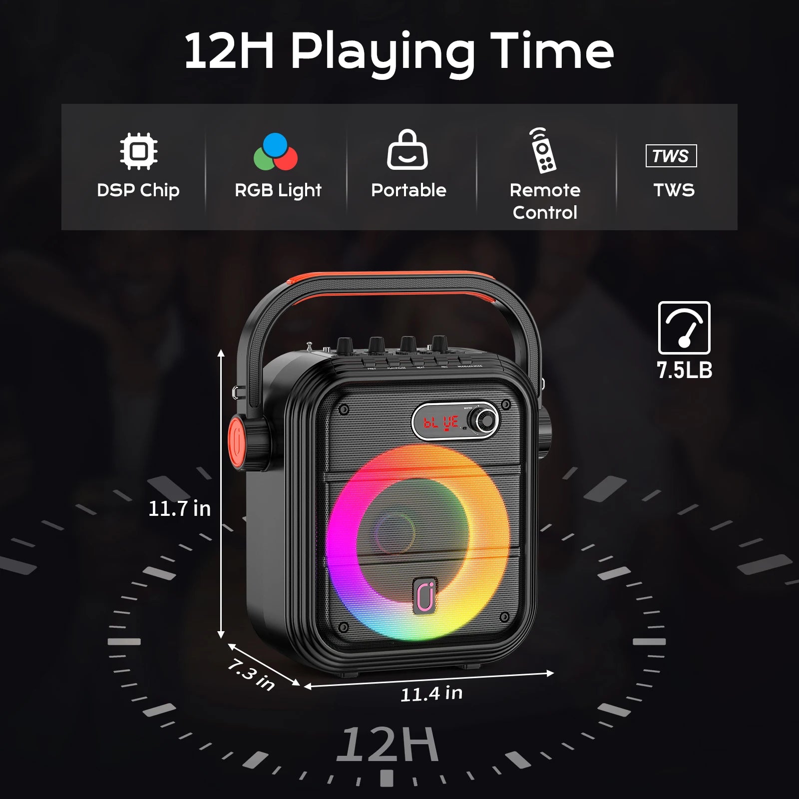 FanFun 66 Blurtooth Speaker with FM Radio, Karaoke Machine with 2 Wireless Microphones, Home Karaoke System for Karaoke Party Night!