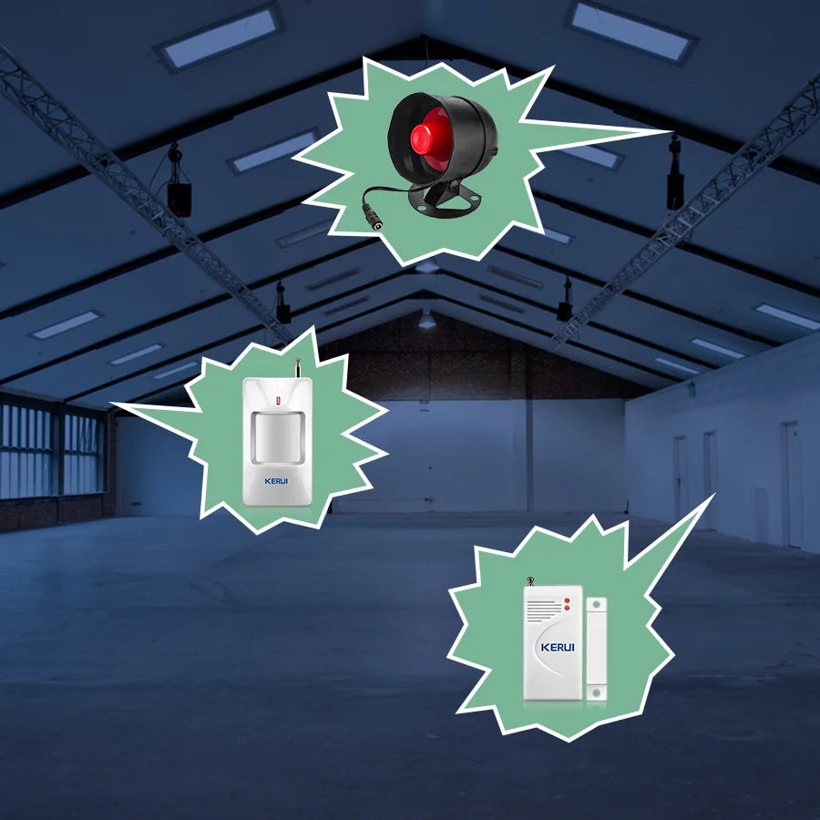 4.the siren alarm include Motion Sensor , Door Contact Sensor and Remote Control suitable for sheds,garage,barn,shop,yard shed,single story apartment or home,cabin,motorhome,chicken coop,any small room you want to protect. (Only WIFI Srien KIT Not Include)