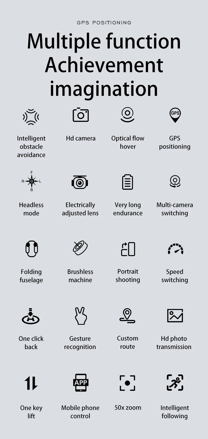 2. GPS one click return to takeoff point, low battery return, no signal return.