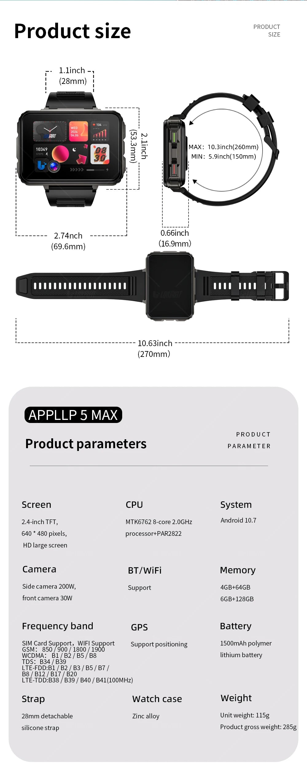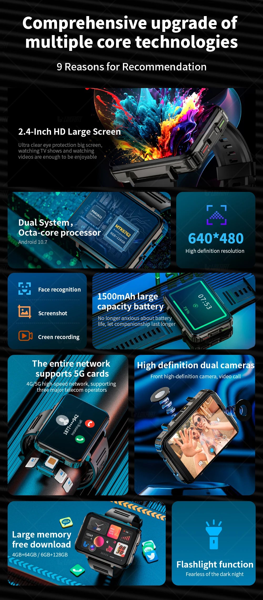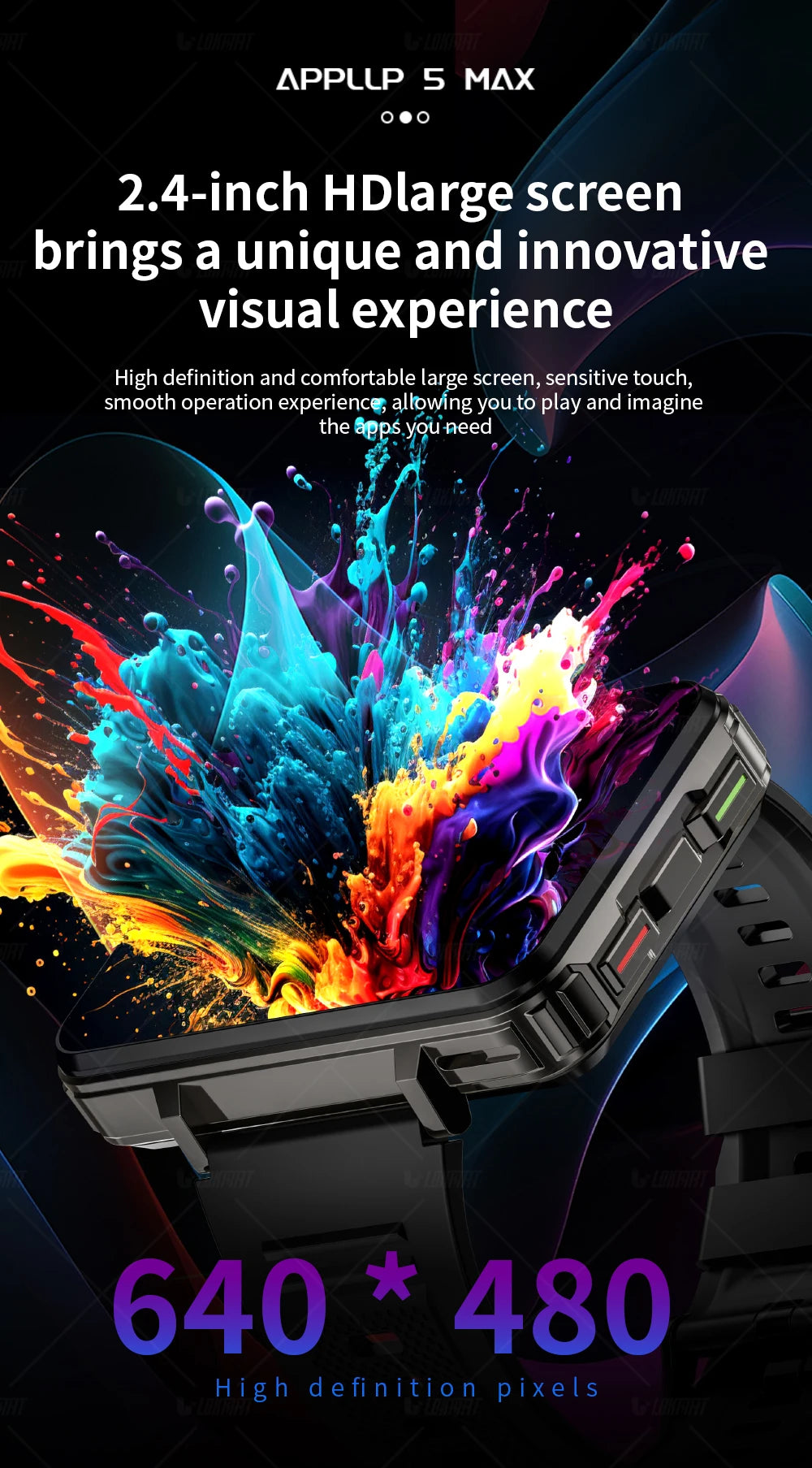 LOKMAT APPLLP 5 MAX Android Watch Phone Square Big Screen Wifi 4G Calls Smartwatches Dual Camera with Flashlight Gaming Watch