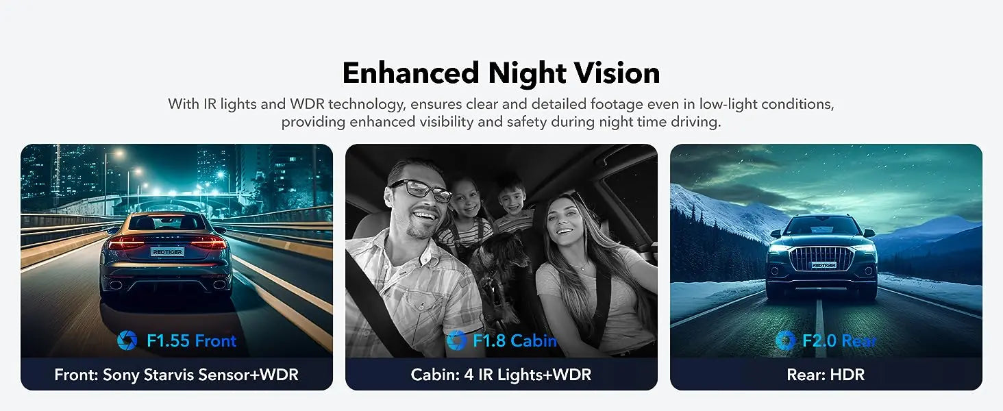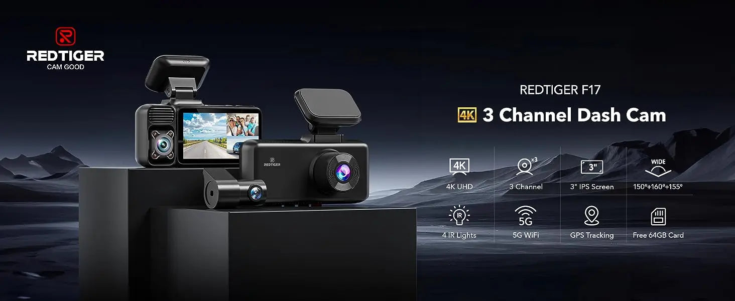 REDTIGER 3 Channel Car Camera 4k Dash Camera