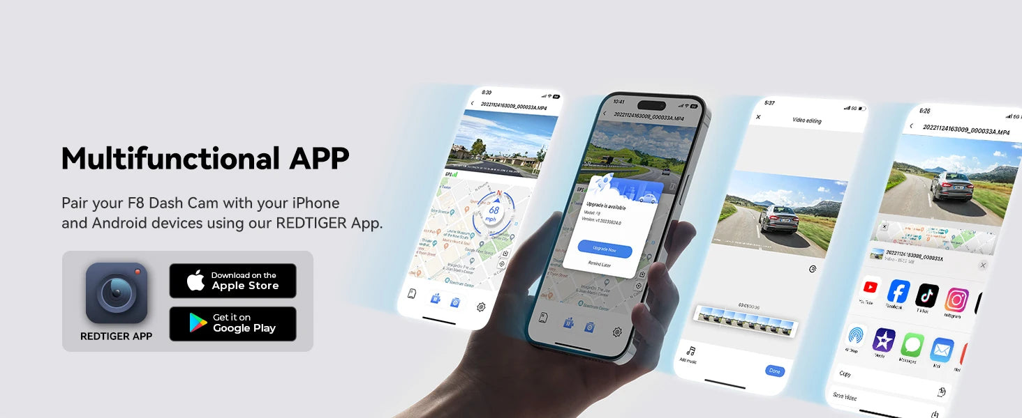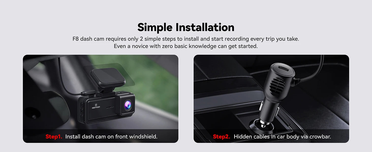 4K Dash Cam Front, 5G Wi-Fi App Control, Touch Screen Car Camera for Cars, Free 32GB Card, 2160P UHD Night Vision, 160° Wide Angle, Built-in GPS, Parking Mode[Ultra HD 4K+1080P Dual Dash Cam] Featuring top quality 4K front camera and 1080p rear cam, the REDTIGER dashcam is able to capture more detailed images, including street signs and license plates. Additionally, with wide-angel camera, the dashcam is with extended views and less blind spots.[Built-in GPS Tracking & Wi-Fi Connection] The built-in GPS module enables the dash cam to precisely pinpoint the vehicle's location and routes on the map. The data can be viewed via the "Redtiger" app on your smart device. Connecting to your mobile devices through built-in Wi-Fi, it is intuitive to change settings and easy to control the cam, view, download and share the videos.[Super Clear Night Vision] The equipped high-spec Starvis Sensor significantly improves light sensitivity of the camera. With the combination of f/1.5 large aperture, 6-glass lens and WDR & HDR technology, the dashcam is able to capture clear images at night or in any low-light environment.[24H Non-Stop Parking Monitor] When detects collision of intrusion, the built-in G sensor will trigger the F7N dashcam to record a video for 15s and lock the video footage. The camera also keeps monitoring the surrounding environment under time lapse mode to ensure the safety of your vehicle (dedicated hardware kit plugged in required).