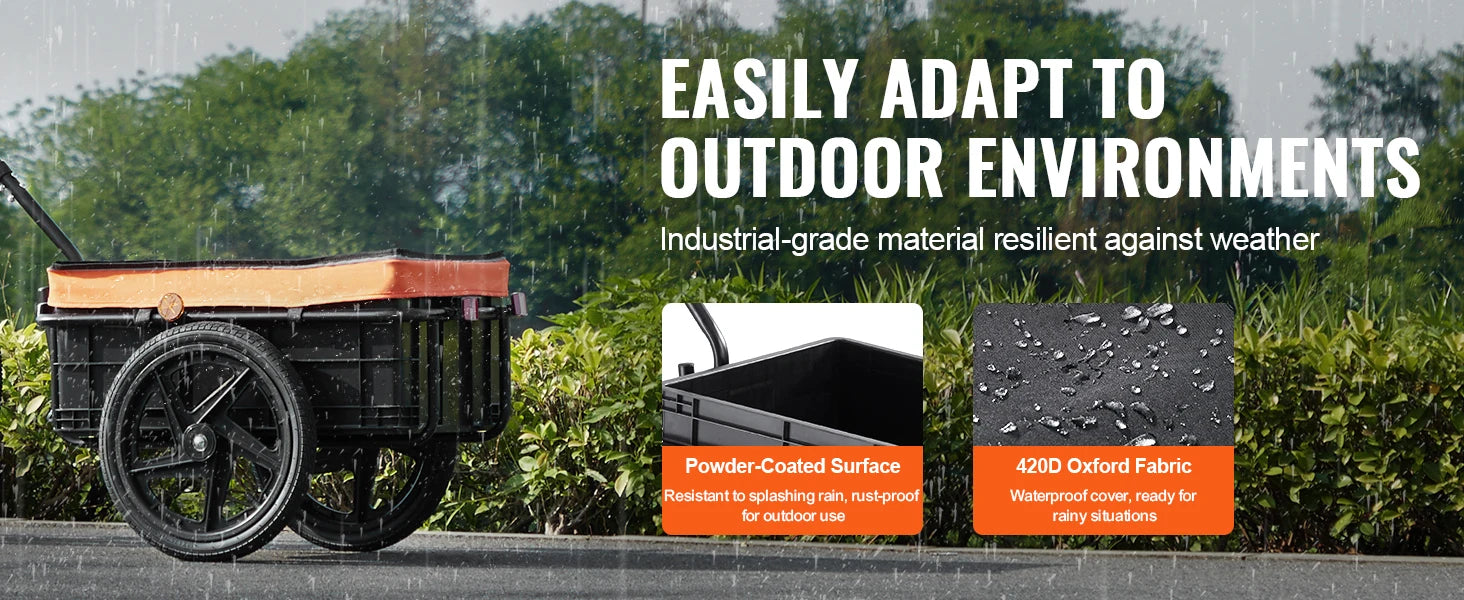 Industrial-Grade Material: This bicycle trailer features a robust steel frame with a rust-resistant coating, ensuring durability and a sleek appearance. Plus, with its 600D Oxford fabric rain cover, your gear stays protected from the elements, rain or shine.