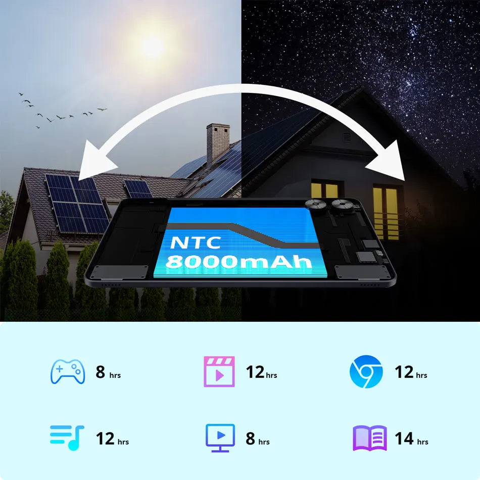 The SVITOO Android tablet is equipped with a powerful 8,000mAh battery, providing up to 12 hours of video playback. The reinforced Type-C port allows for easy charging, regardless of the orientation of the connector, bringing you more entertainment time and Internet time.