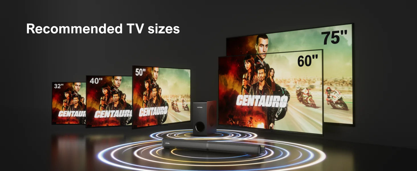 - Featuring built-in 2 tweeters and woofers, this 4.1ch soundbar for TV reproduces a balanced sound enjoys richer lows, and indulges in crisper highs. Additionally, the Apollo S50 soundbar has an extra 7.2L large-volume wired subwoofer that enables the diaphragm's amplitude to reach 15mm, achieving a more powerful bass.