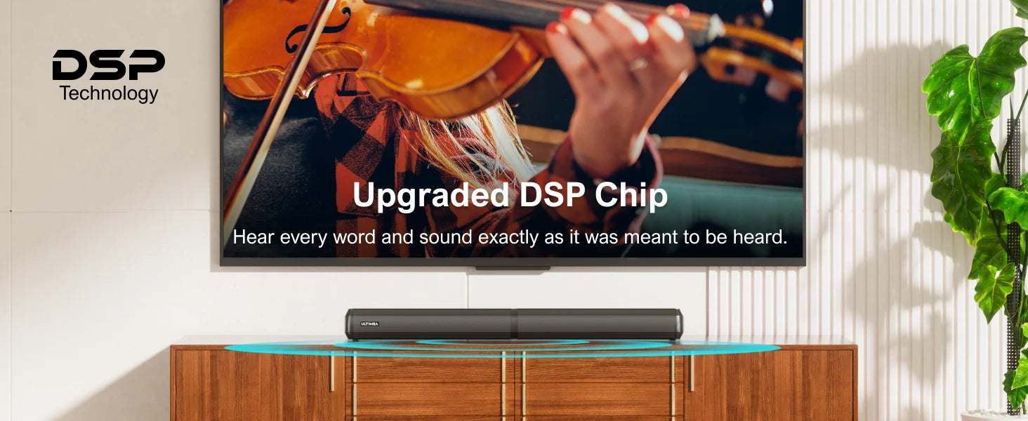 - The soundbar utilizes an upgraded DSP chip to reduce audio static. This ensures that every word and sound is heard exactly as it was intended.
