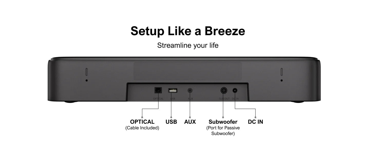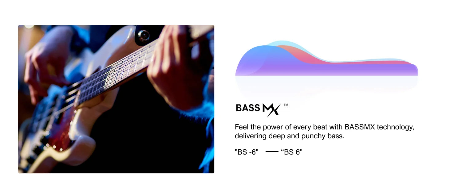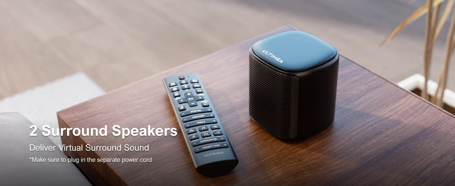 Feel every beat with a powerful 4-inch wired subwoofer featuring cutting-edge Ultimea BassMX technology. Its finely tuned magnetic circuit and specially designed diaphragm deliver rich, booming bass that makes action scenes and explosive sound effects jump off the screen.