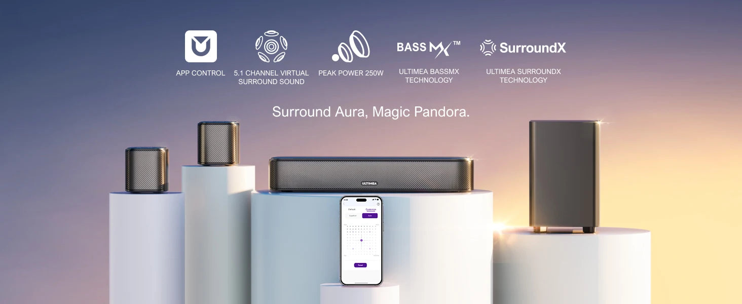 ULTIMEA 250W 5.1 Soundbar for TV, Home Theater Virtual Surround Sound System with App Control, Subwoofer & 2 Surround Speakers