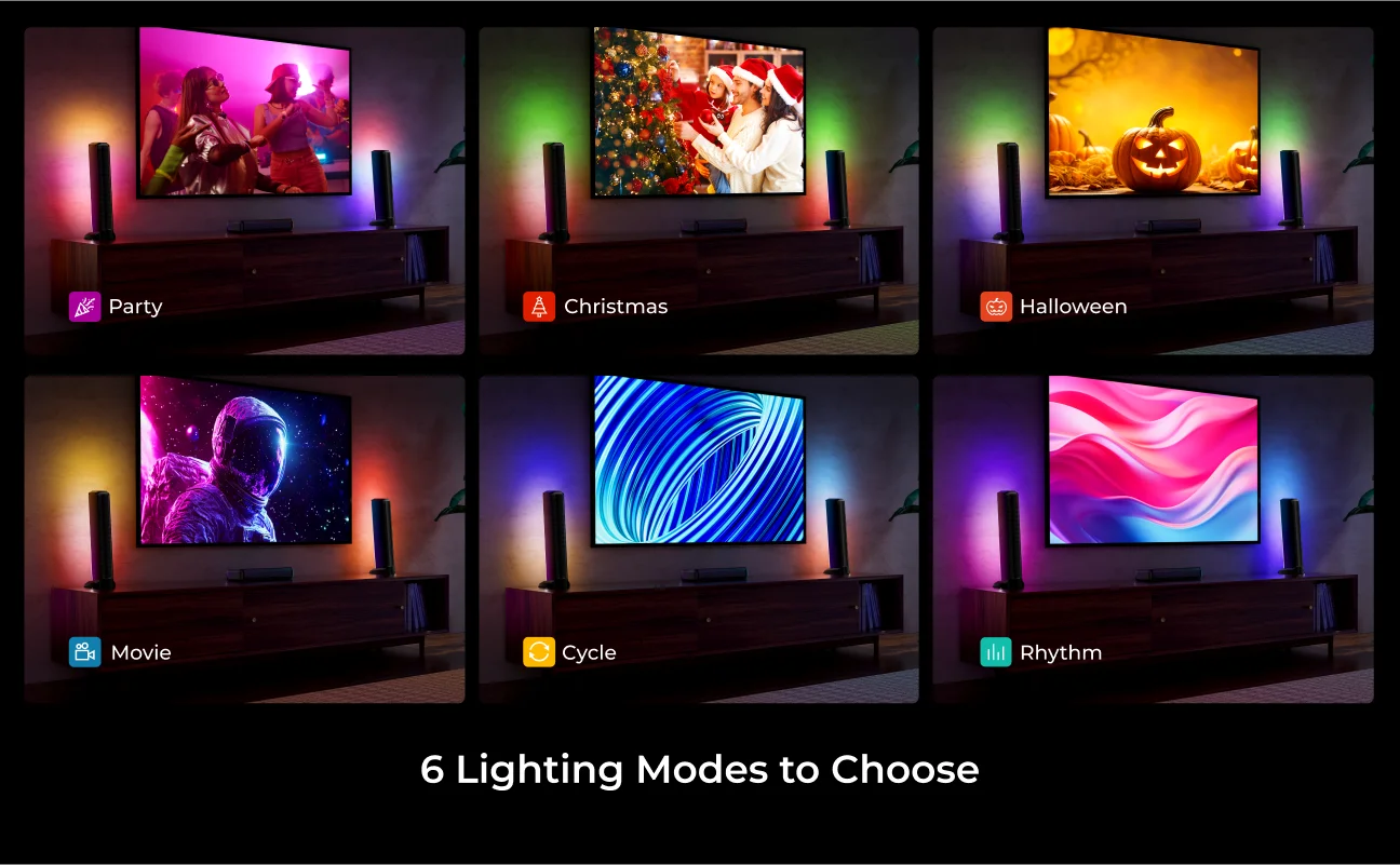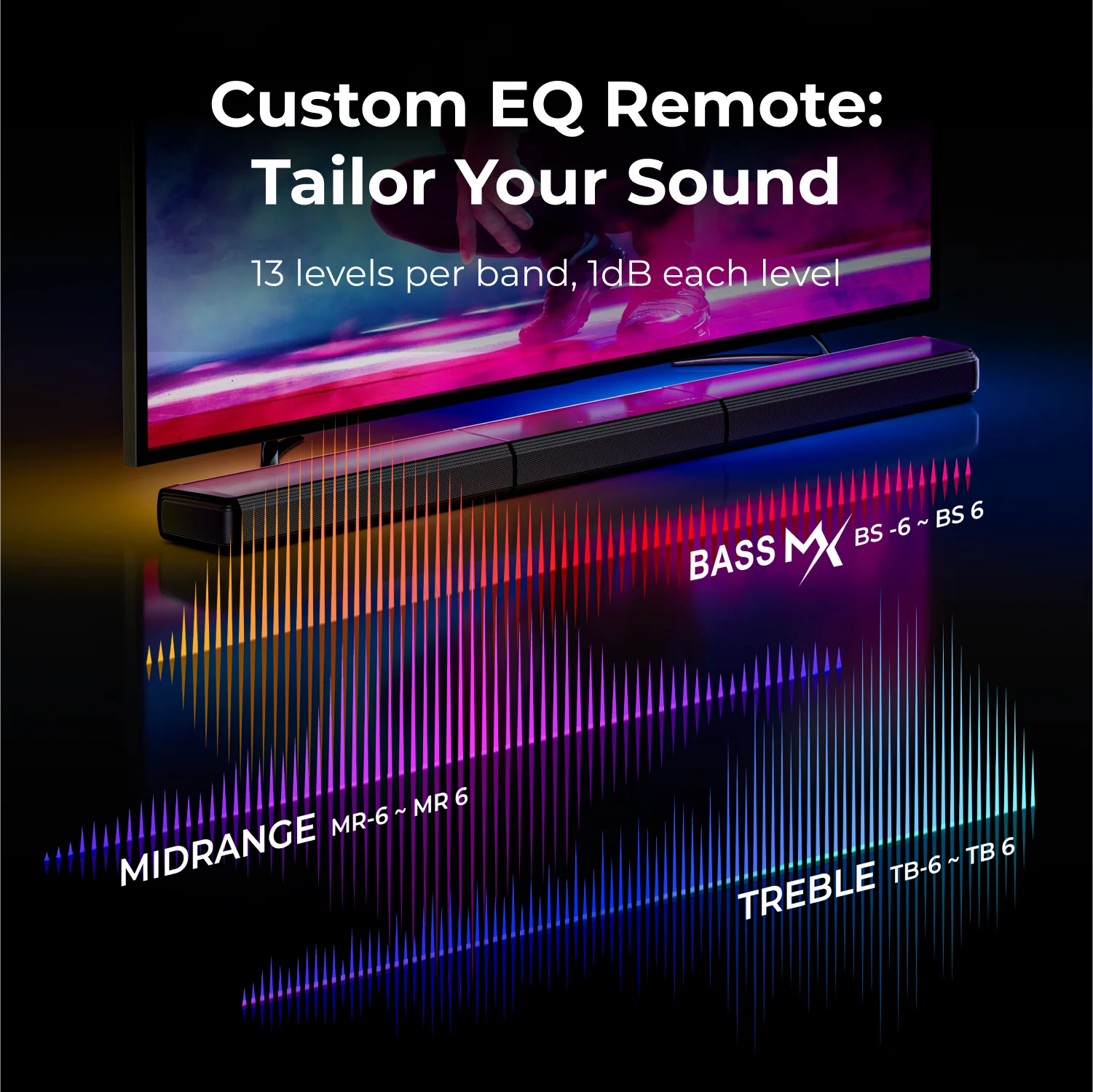 RGB Lighting & Superior Sound: Beyond exceptional audio, enjoy dynamic RGB lighting with 6 preset modes and millions of color options to elevate your home décor. (Please note: The backlights do not sync with TV screen colors.)