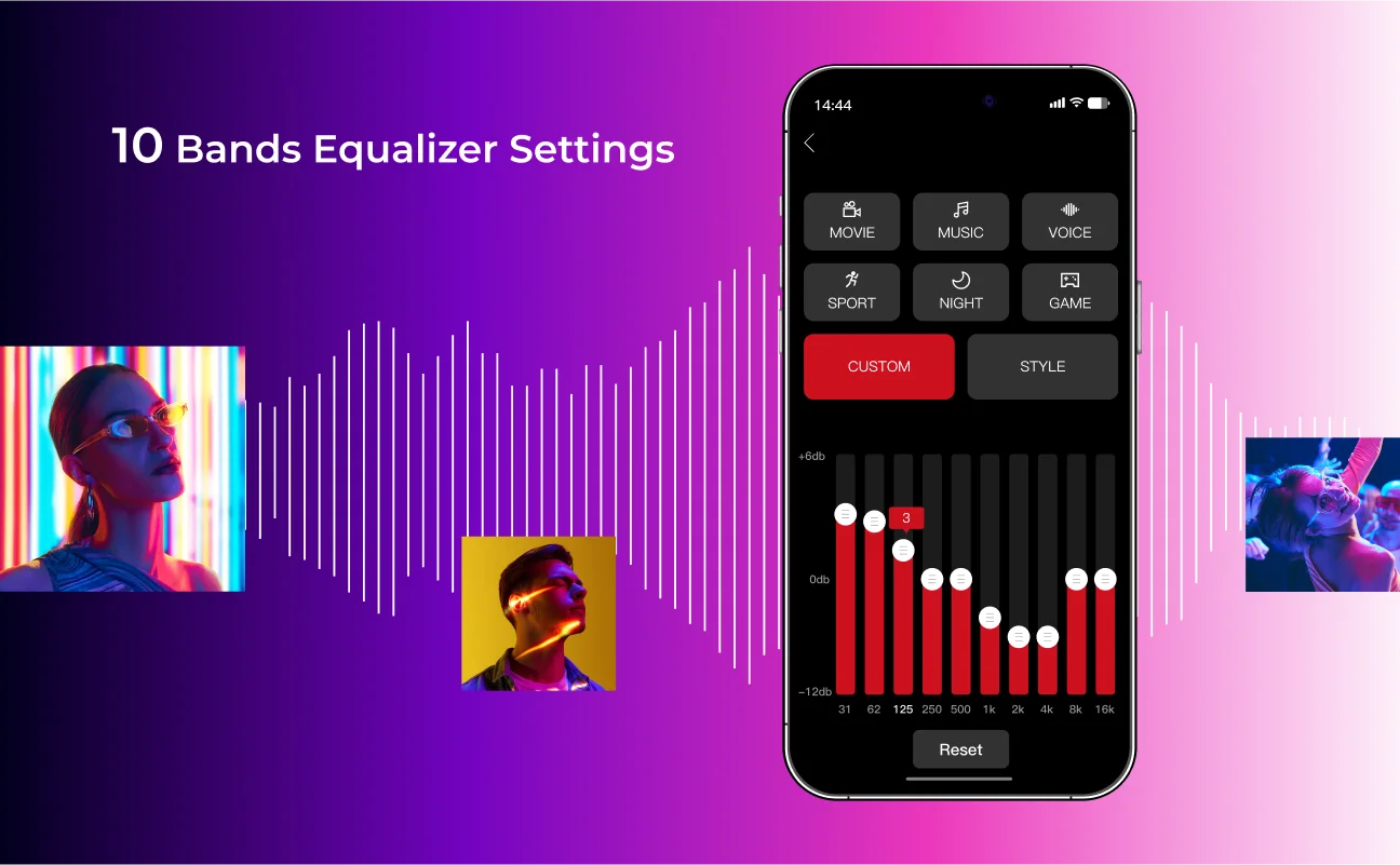 Sound Mode: Hi-Res Sound Mode,3D Surround Sound Mode,Smart Sound Mode,Extra Bass Mode,Sleeping Mode,Game Mode,3EQ Modes
