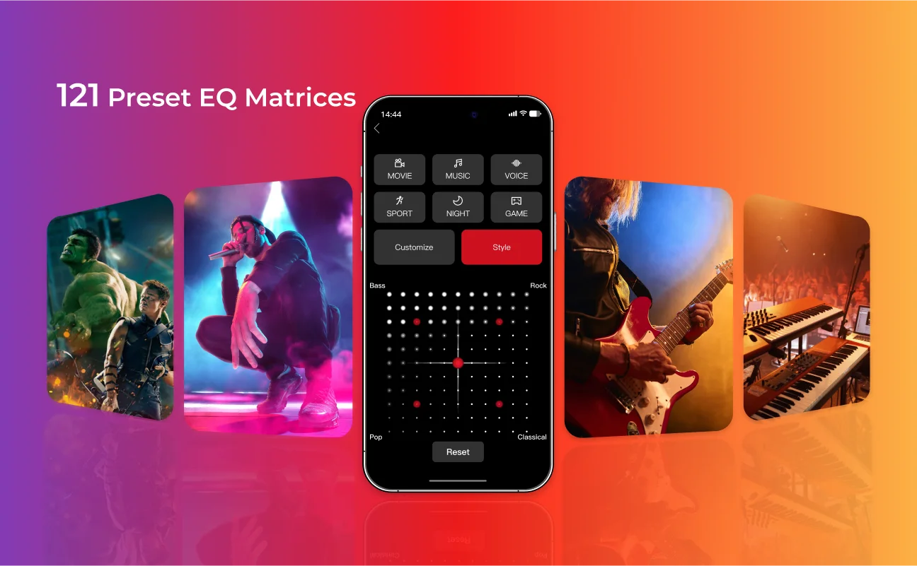Smart Control via Ultimea App: Gain complete control with 121 expert EQ presets and specialized 10-band modes (Movie, Music, Voice, Sport, Game, Night). The advanced “Customize” feature empowers you to fine-tune every aspect of your sound for an experience that’s uniquely yours.