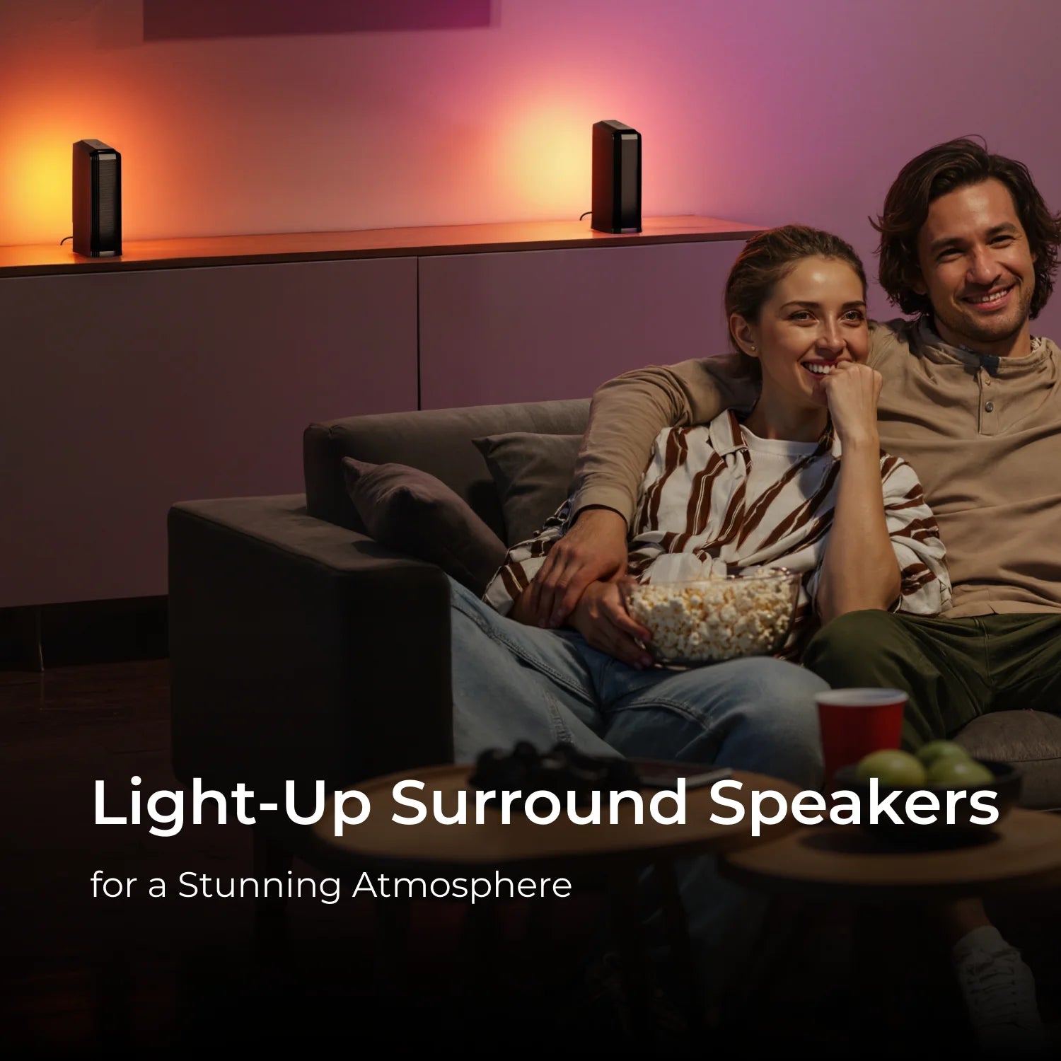 Light up your entertainment zone with vibrant RGB backlights. Choose from 6 preset modes or millions of colors for ambient lighting, party effects, or relaxing tones. Instantly elevate your room’s mood—perfect for movie nights and gaming sessions.