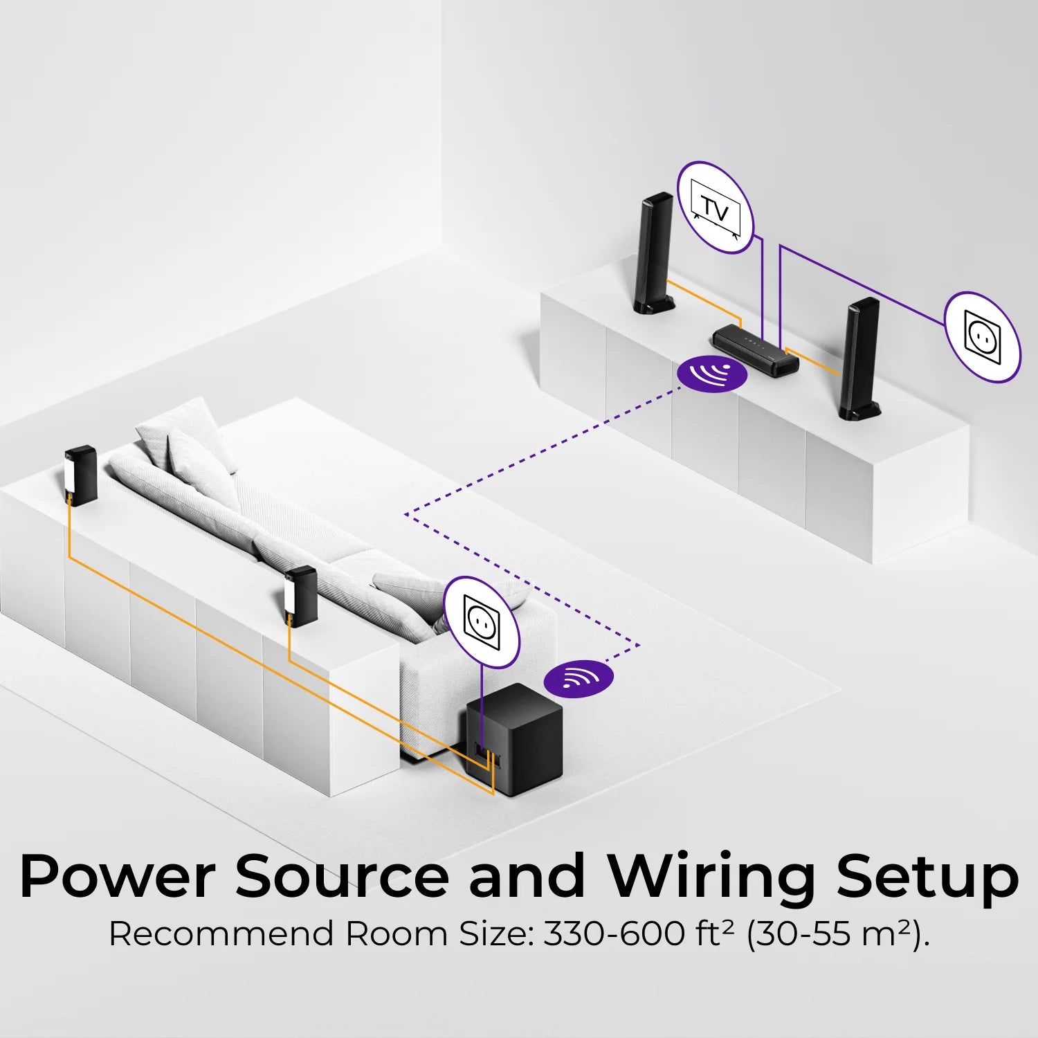 The detachable center channel offers flexible configuration and improved vocal clarity—ideal for compact or spacious home setups. The 3-in-1 modular design adapts to any room layout while saving space with a sleek, minimalist aesthetic.